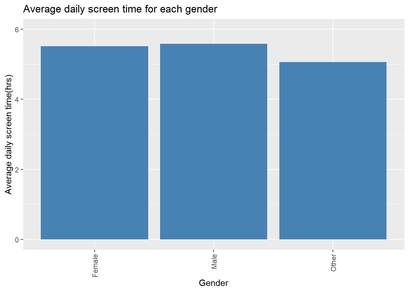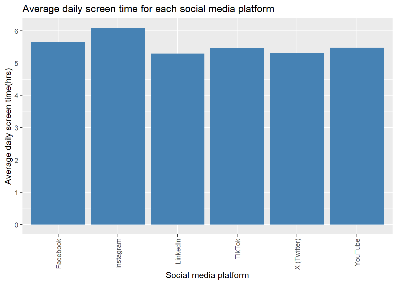 The social media platform with the highest effect on the screen time of the users was successfully identified in this analysis. Instagram had the highest average screen time for all of the users. Instagram had an average daily screen time of 6,08 hours per day. Instagram was followed by Facebook and Tiktok for second and third highest. All social media platforms had an average daily screen time of 5 hours.